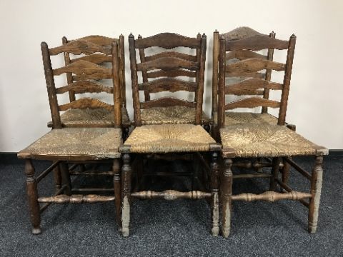 A set of six nineteenth century rush seated country chairs