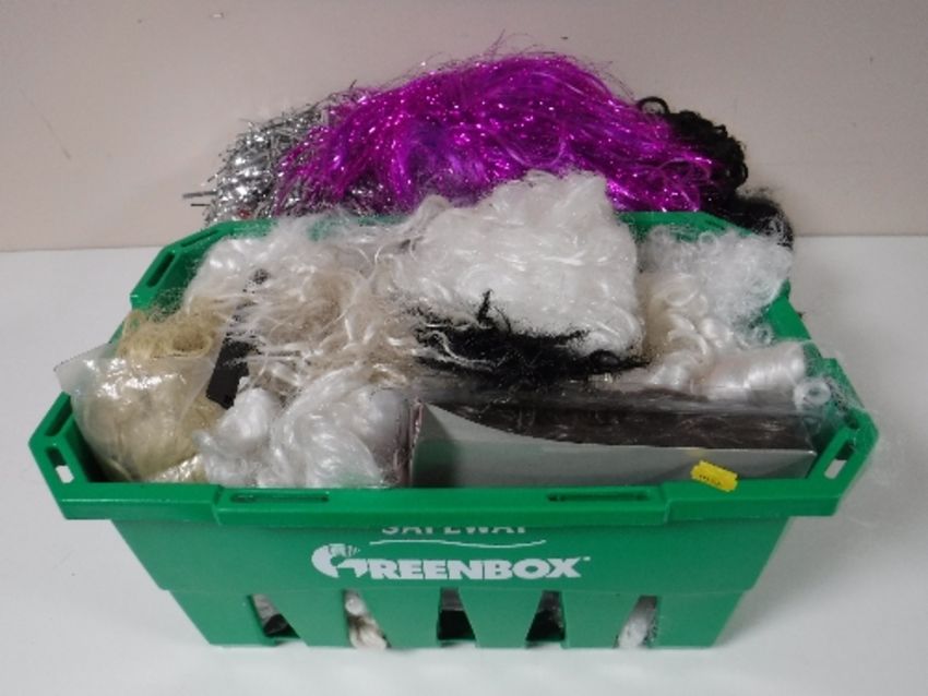 Two boxes containing assorted wigs