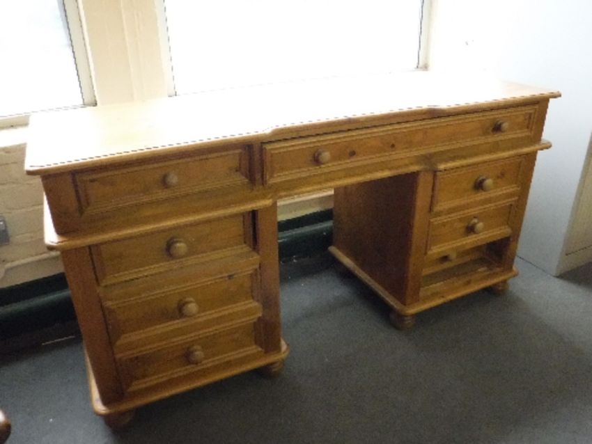 A pine twin pedestal dressing table, width 148cm