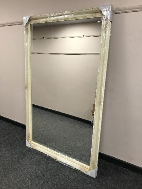 A cream framed over mantle mirror, 90cm x 151cmÂ