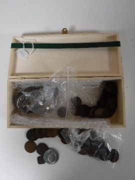 A box of coins, copper pennies etc. (Q)