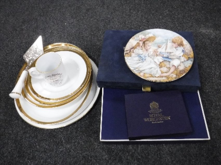 Thirteen pieces of Royal Worcester china - boxed birds of Dorothy Doughty dessert plate, boxed princess regent shallow dish, dinner ware, cake server etc