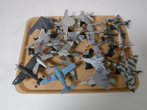 A tray containing twenty die cast airplanes on stands