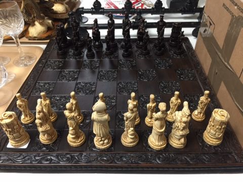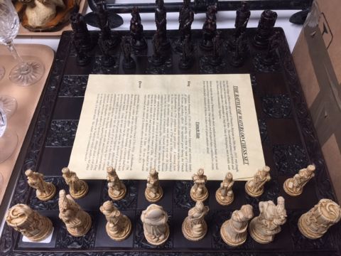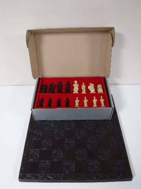 A Waterloo chess set and board in un-used condition, boxed.