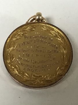 A 9ct gold disc fob presented to Lieut J D Milburn for valour in the Great War, 8.5g.