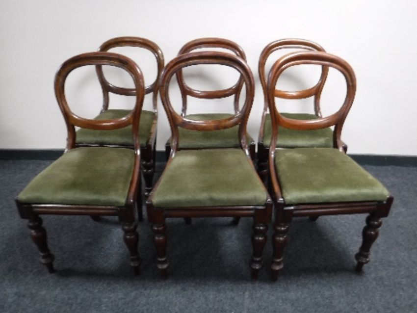 Six Victorian balloon back mahogany dining chairs