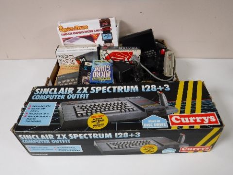 A boxed Sinclair ZX spectrum 128+3 , together with a box containing a Sinclair ZX 181, assorted Sinclair accessories, games and booklets