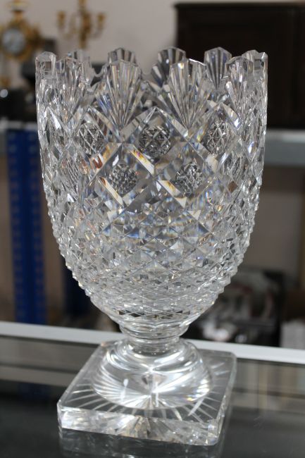 Pineapple vase is by Waterford and is signed to base. Base with minor chips to each corner, also with a couple of very small chips to the rim. Other items in good order.