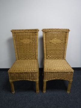 A pair of wicker high back dining chairs