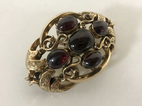 Large and impressive Victorian gold brooch set with cabochon garnets