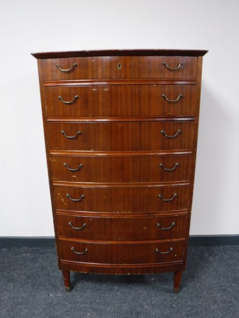 A mid twentieth century mahogany bow fronted seven drawer chest