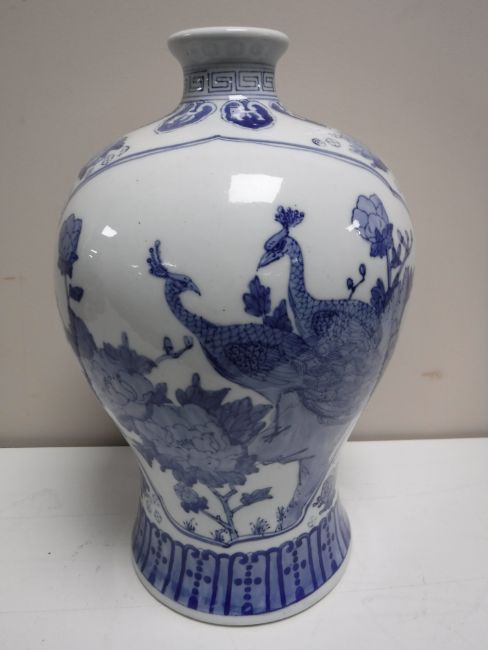 A Chinese blue and white vase, with bird decoration, height 37 cm