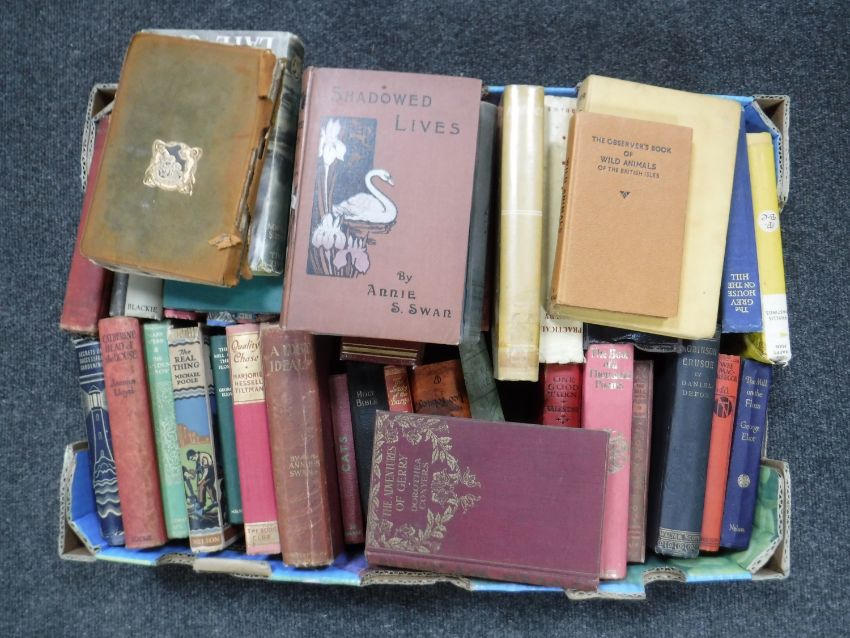 Two boxes containing twentieth century books, novels, family health encyclopaedia, etc