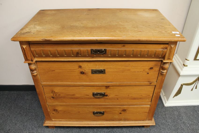 An antique pine four drawer chest, width 95cm