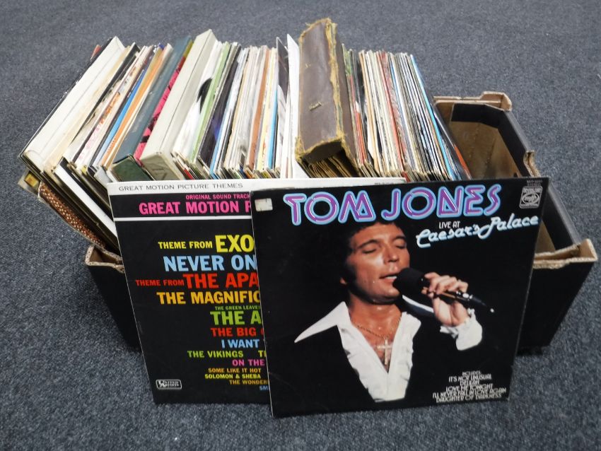 A box containing a quantity of LP's, easy listening, etc, together with a family bible and a Walt Disney Fantasy Land book