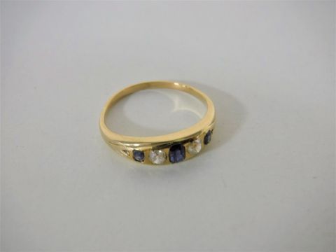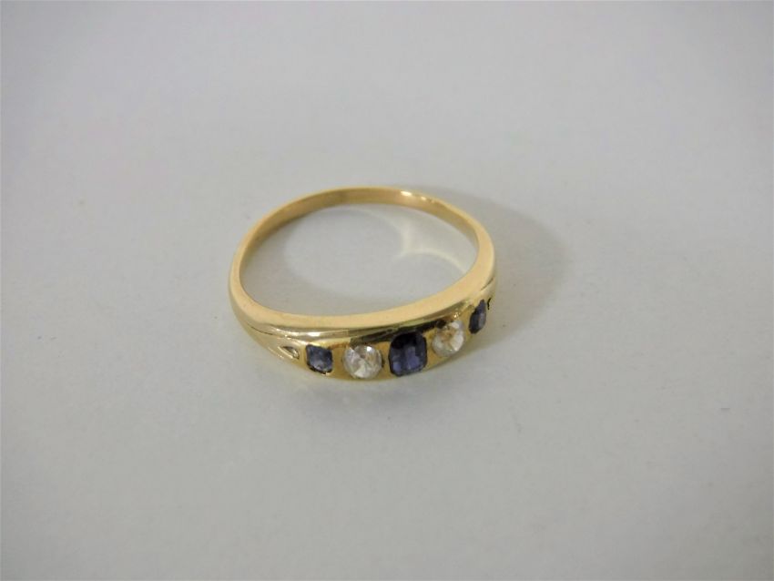 An 18ct gold diamond and sapphire ring, size L, 2.5g.