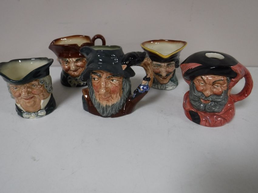 Five small Royal Doulton character jugs; Fallstaff, Old Charlie, Parson Brown, Rip Van Winkle and Dick Turpin. (5)