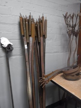 A quantity of metal garden markers decorated with birds, butterflies, rushes and twigs