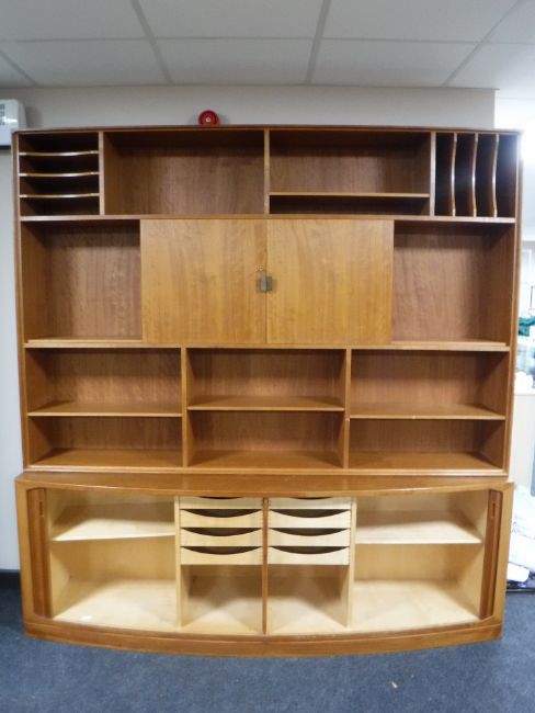 A mid 20th century teak office cabinet with shutter door base