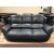 A blue leather four piece lounge suite : three seater settee, pair of reclining armchairs and one further armchair