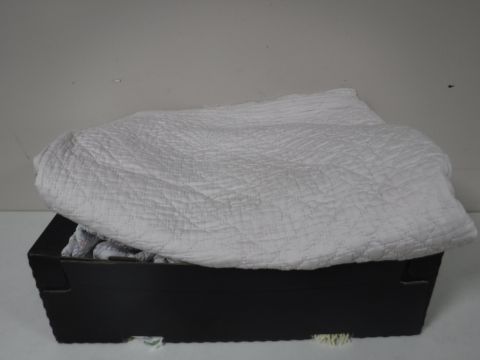 A box of vintage quilts etc
