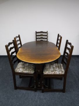 An oak extending dining table and five ladder back chairs