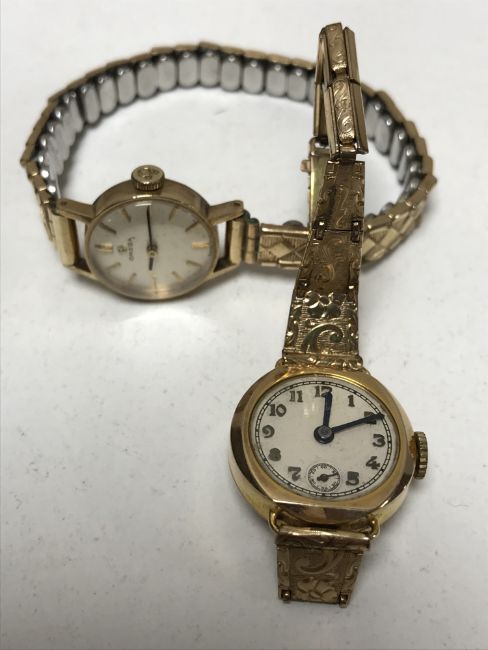 A lady's 9ct gold Omega wristwatch, together with another lady's 9ct gold watch