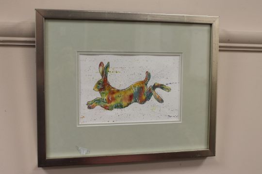 Louise Macleod (British Contemporary), Psychedelic hare, watercolour, signed and dated 2012, 20cm by 13.5cm.