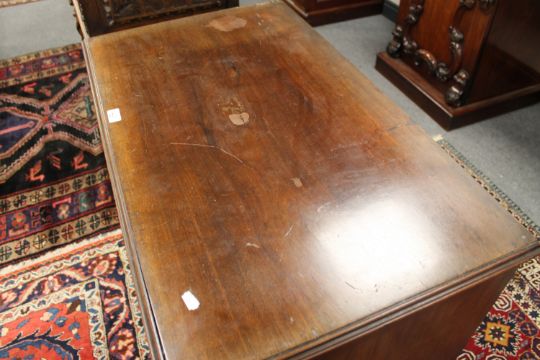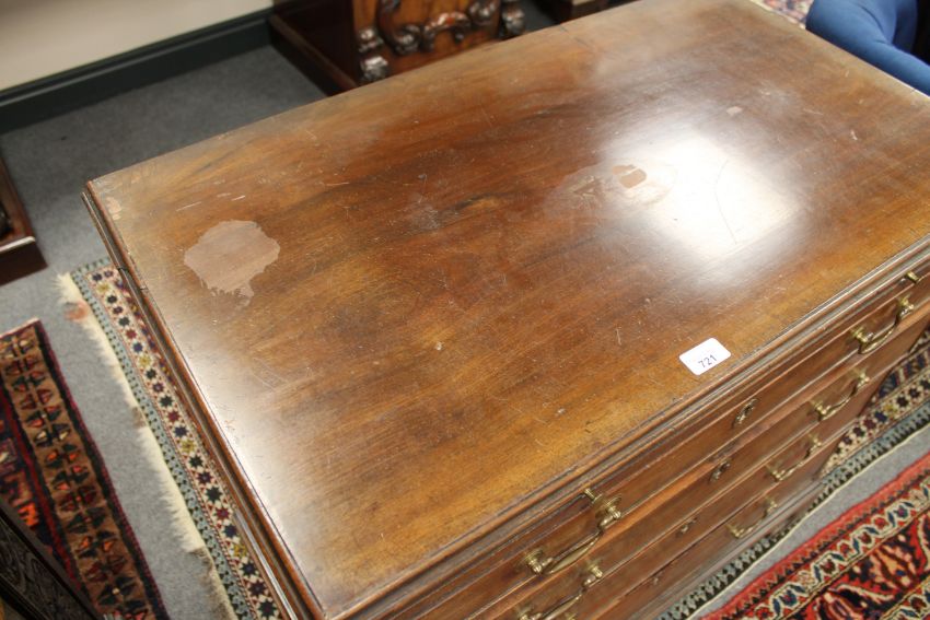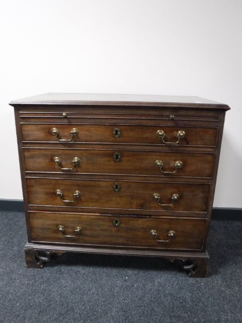A George III mahogany chest of four drawers, with brushing slide, raised on pierced bracket feet, width 87cm.