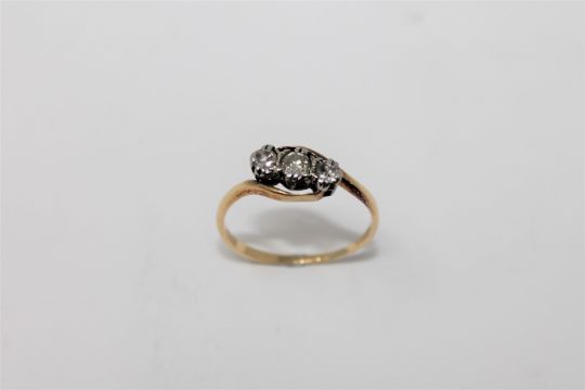 An early twentieth century diamond three stone ring, approximately 0.25ct, size O/P, 2.3g.