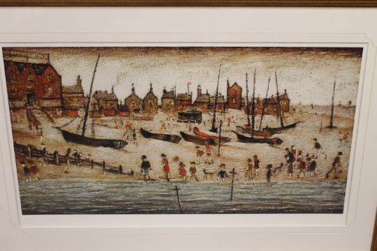 After Laurence Stephen Lowry RA (1887-1976), The Beach, colour print, limited edition, 96 cm by 50 cm, produced by Chelsea Green Editions, with certificate of authenticity.