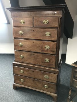 A George III mahogany double chest of seven drawers raised on bracket feet, width 96cm.