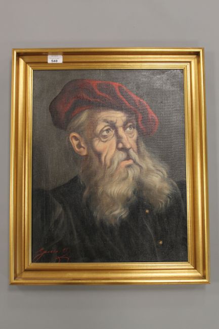 Continental school, 20th century, Portrait study of a bearded man, oil on canvas, indistinctly signed, 39cm by 49cm.