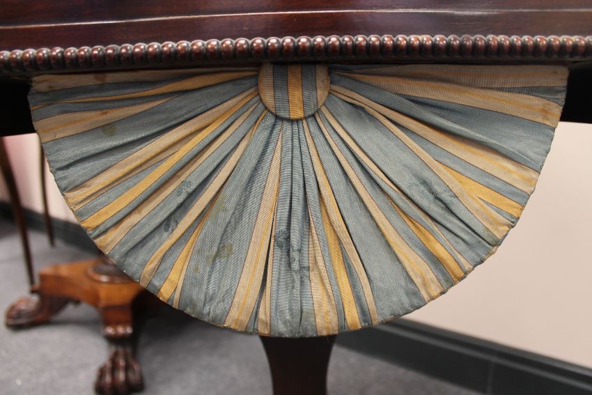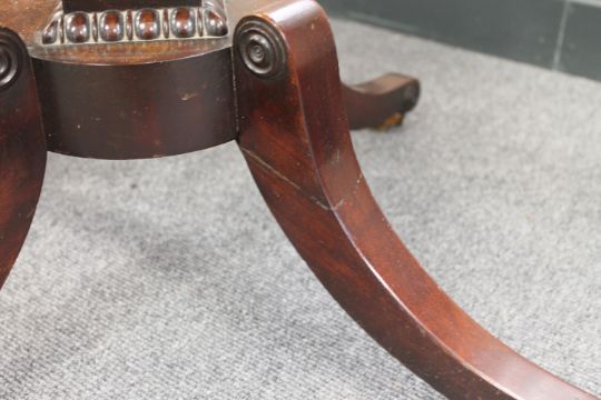 An old repair to one of the sabre legs. Fabric with some faint marks but overall in good condition. A few typical light surface scratches to the top. Overall in good, clean condition.