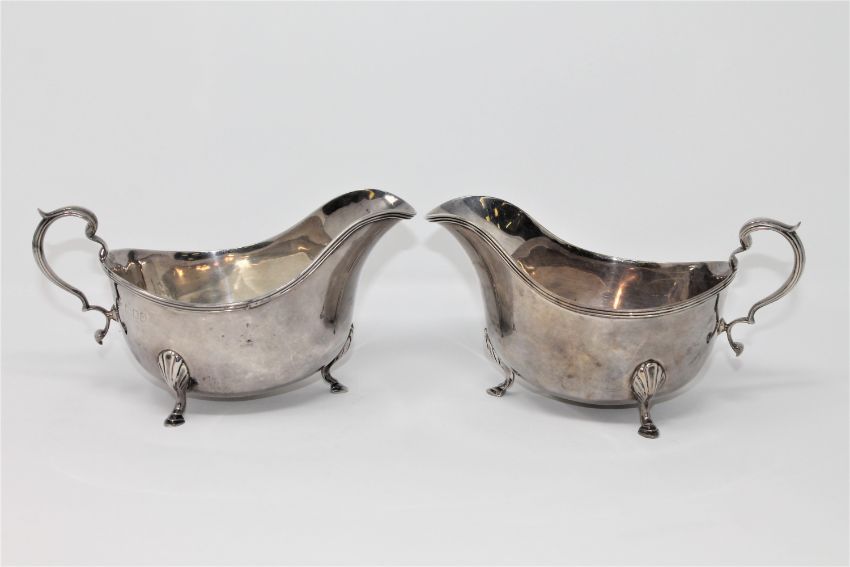 A pair of silver sauce boats, London 1917, 349g. (2)