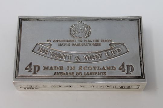A novelty silver matchbox holder in the form of a Bryant & May Ltd Swan Vesta match box, Alastair Norman Grant, Edinburgh 1977, length 7.5cm