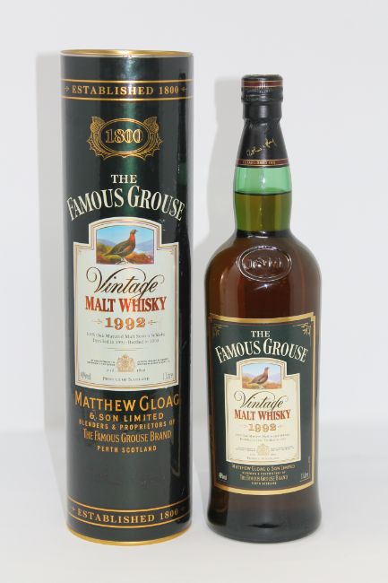 The Famous Grouse - Vintage Malt Whisky distilled 1992, bottled 2003, 1l, in presentation tube.