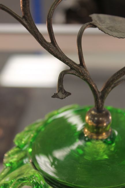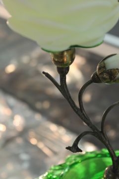 Table centrepiece with a broken off leaf and another broken stem which appears to have held another flower. Otherwise good condition. See additional images.