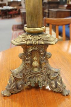 Column and shade likely a marriage. Shade with some typical minor nicks to the lower rim. Chimney and reservoir both in good condition. See additional images.