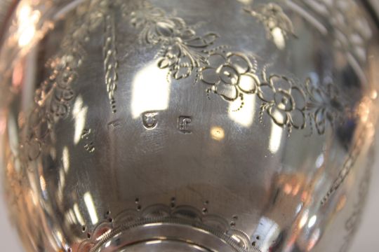 Glass liner in good condition. 18cm high including handle. Silver weighs 160g. Good condition.