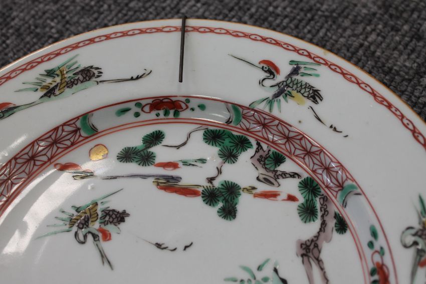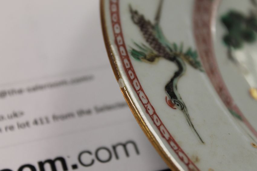 One plate with minor chips to the rim. Minor surface wear to both. Generally good condition. There are no hairline cracks.