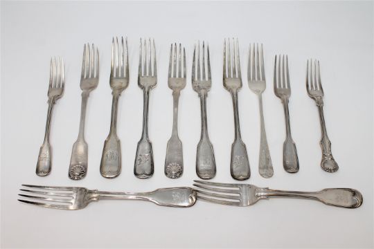 A group of twelve Victorian silver forks, various dates, patterns and makers, 941g gross (12).