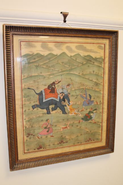 Indian School (Late 19th/20th century), A tiger hunt, gouache on silk, 51cm by 42cm.