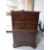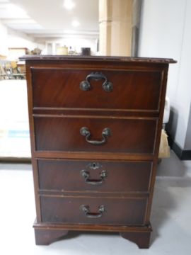 A mahogany two drawer filing chest with brown leather inset panel and inlaid mahogany two tier audio stand