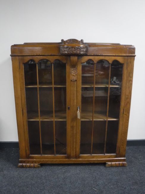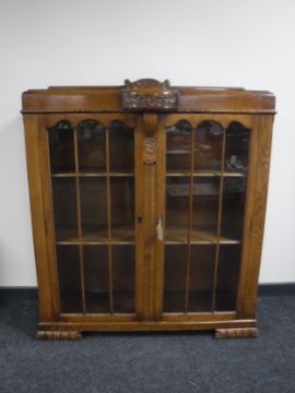 An early twentieth century carved oak display cabinet