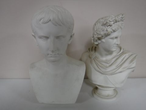 Condition very poor. Both busts heavily broken and reglued. One figure missing small section of the head.