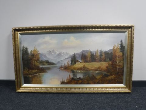 An ornate gilt framed oil on canvas - Dwelling in a mountainous landscape