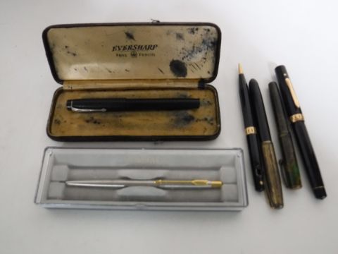 A collection of pens including examples with 14ct gold nibs