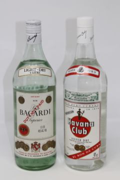 Havana Club - Silver Dry Rum, 1l, together with Bacardi Superior light dry, 1l. (2)