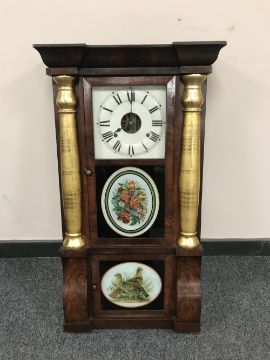 A 19th century gilded mahogany wall clock with enamelled dial